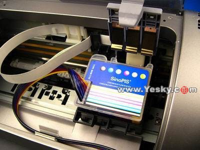 無(wú)海綿墨盒配以硅膠管線和各色外墨盒蓋,組成連續(xù)供墨系統(tǒng)的內(nèi)部部分,當(dāng)然也少不了永久長(zhǎng)效芯片。