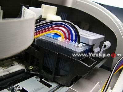 這是目前無(wú)海綿連續(xù)供墨系統(tǒng)最理想的走線方式,設(shè)計(jì)為一體,接頭在墨盒表面蓋子的下面,美觀大方