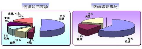 (傳統(tǒng)與數(shù)碼印花市場(chǎng)的地理分布)