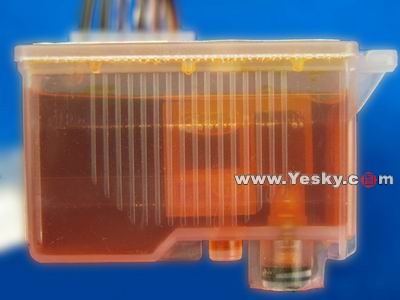無(wú)海綿墨盒側(cè)面圖,里面有一個(gè)墨水壓力平衡倉(cāng),可以起到平衡墨水的作用,使得打印頭承受的壓力更為均衡。